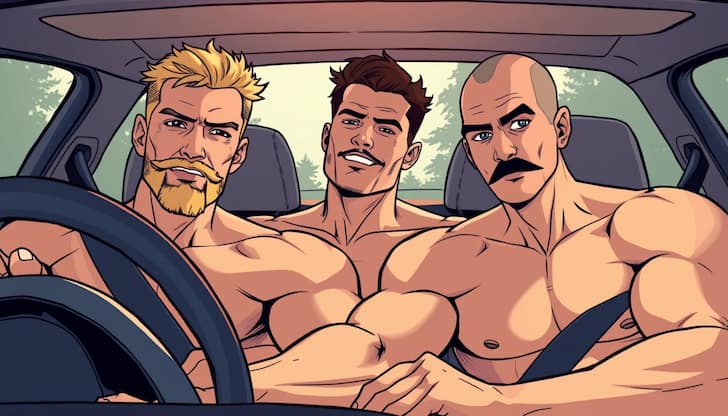 Guys hit the road for all sorts of reasons, but when two or more horny men pile into a car, the drive turns electric fast. Tension builds from the first mile, with glances and smirks hinting at what's brewing under the surface. Leather seats creak under shifting bodies, and the hum of the engine matches the pulse in your veins.