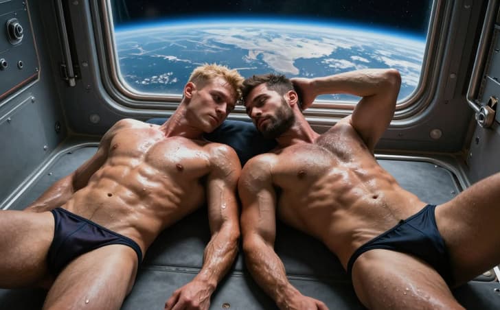 The interstellar void makes the inner strength stand out across the huge black out there. Feelings stay straight and tough, building higher every minute. Minds hold the lock hours straight. Shared heart beat pushes everything deeper inside. The connection stays solid through the long quiet drift. Strong feelings stay true between two men alone in the big empty space.