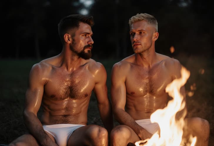 The fire’s down to glowing coals, and the air’s got a bite that makes you want to close the distance. You’re both a little drunk, a little wild, and the night’s pushing you toward something inevitable. His eyes lock on yours, and there’s no mistaking what’s about to go down. This is where you let go, where you let the heat take over.