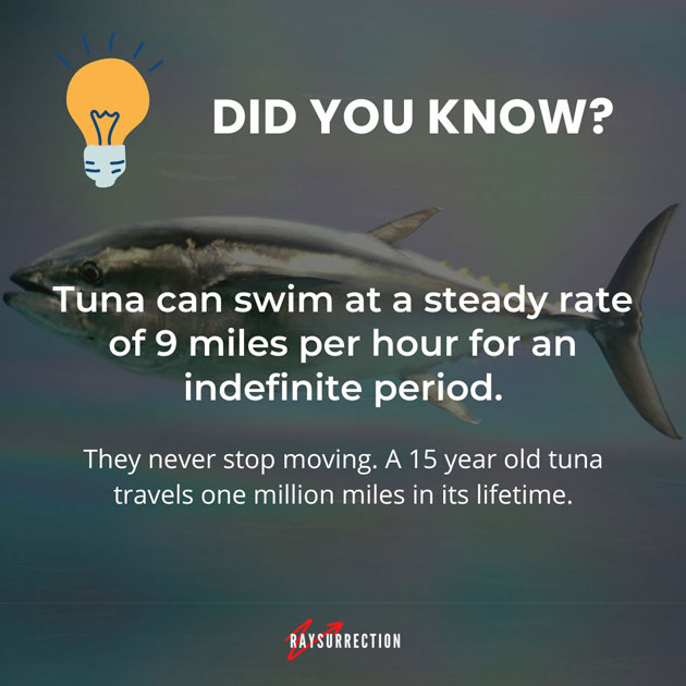 #DidYouKnowTuna can swim at a steady rate of 9 miles per hour for an indefinite period. They never stop moving.