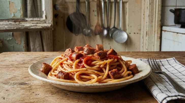 Simple food has a unique way of bringing comfort, especially on days when I want to keep things easy or I'm craving something nostalgic and filling. Vegetarian depression spaghetti is a recipe that has found a place in my kitchen for exactly these reasons. This dish takes old-school pantry staples and turns them into a really satisfying meal, especially when you add in the convenience of tomato ketchup and chopped vegetarian sausages or vegetarian minced meat.